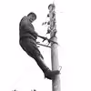 Tømrersvend fra tømrermester Jensen, C. W. fotograferet i Grovelejren