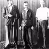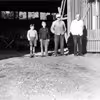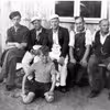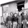 5 danske tømrere i Grovelejren under dennes udvidelse 1946-47. Foran sidder en dreng fra lejren, 1946
