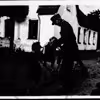 Tyske soldater til hest i gårdspladsen på Moesgaard under Anden Verdenskrig.