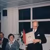 100 års jubilæumsfest ved Holme Brugsforening. Aage Annesen modtager et diplom ved festen.
