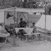 Camping Blommehaven. Familie hygger sig omkring deres tidlige version af villatelt.