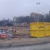 Emiliedalsvej. Byggeplads og container. Emiliehøj ses i baggrunden.