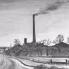 Tegning af Emiliedal Teglværk med skorsten og tipvognsspor over Emiliedalsvej.
