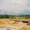 Bushøjvænget 113. Opførelse af Lokalcenter Skåde. Udsigt ud over de færdige sokler.
