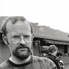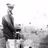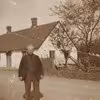 Foto af Guttrom Jakobsen ved sit hus i Østergade ca. 1930.