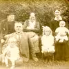 Portræt af familien Mikkel Pedersen, Troelstrup Skole ca.1915.