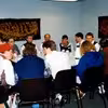Skilt med navne på håndværkere, der har entreprisen ved opførelsen af Brande Bibliotek, fritidshjem og museum.