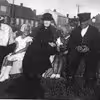 Knolden med udsigt op mod Søndergade På billedet ses Rasmus Skomagers (Pedersen) bror Peder Lading Pedersen og forældrene sammen med deres børnebørn Birgit og Ernst