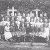 Konfirmandgruppebillede i Viby Præstegårdshave. Konfirmationen var 15.4.1928