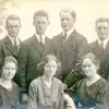 1920 Konfirmation, Junget-Thorum. Konfirmander og pastor Langballe foran Junget præstegård.