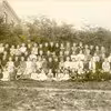 1914 ca Skolefoto, Jebjerg skole; lærere og elever i haven ved skolen