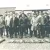 1965 ca Thorum Jagtforenings klapjagt. 21 jægere på gårdsplads med udbyttet