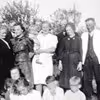 1946 Grættrup Skole, lærer K.H. Knuden og hustru med eleverne i haven