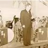 Skoleinspektør H.C. Hansen, indleder et skolebal, ca. 1950.