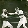 Bokser Henning Jensen, Skive stopper bokser Helge Marcussen, Roskilde. Ca. 1950.