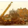 Kran fra Brårup maskinfabrik til byggeri af nye blokke på Kirke Alle, Brårupvej i baggrunden, Skive Elektro, Gammelgårdsvej 29. 11-4- 1958.