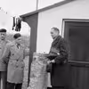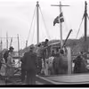 Skive Sydhavn, demonstration af skorsten på fiskekutter. Ca. 1952.