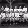 Stadion i Grønnegade. Spillere fra Hem Fodboldklub foran Det Røde Klubhus, ca. 1910.