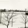 Vinter på stadion i Grønnegade med det røde klubhus og vandtårnet på Holstebrovej i baggrunden. Ca. 1932.