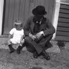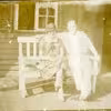 Det røde klubhus, Aakjærsvej, på trappen sidder manufakturhandler Bernhard Fogh og ukendt barn. Ca. 1910.