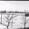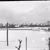 Sne på dyrskuepladsen, det røde klubhus og Aakjærsvej i baggrunden. Ca. 1910.