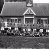 Stadion i Grønnegade. SIK fodboldspillere foran Det Røde Klubhus, ca. 1910.