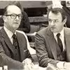 Generalforsamling i Salling Bank, Frederiksgade 08, ca. 1980, fra venstre, Bankdirektør P.H. Stenberg, til højre Herreekviperingshandler Lars Andersen.