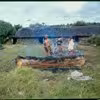 En række fotos af "livet" som stenalder folk på Hjerl Hede.