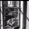Due i vinduet på Skive Politistation, Torvet. Ca.1951.