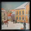 Tryk af maleri med motiv af torvet og det gamle Rådhus / politistation