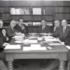 Skive Folkeblads bestyrrelse og redaktører til møde. December 1965. Nr.5 fra venstre: Redaktør Poul Erik Søe. Nr.6 fra venstre: Formand, gartner Svend Madsen Nr.7 fra venstre: Redaktør Elin Han- sen.