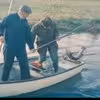 Mand sår (symbolik). - Fire lystfiskere, der er bid, fisken tages af krogen. - Ruse sættes ud. – Fi-skene afstryges. Æggene hensættes til klækning. Døde æg sorteres bort. - Æggene er udklækket, masser af yngel. Ynglen udsættes fra store junger. - Elektrofiskeapparat anvendes til at indfange og kontrollere de små fisk. Der tages prøver, fiskene måles. Fiskene sættes ud igen. - Apparatet bæres tilbage til bilen. Stor fisk vises frem. Fisk mærkes, måles. Der tages prøver. - Fiskens van-dring vises på et Danmarkskort. - Lystfisker. Der er bid. Fisken smides ud igen. Bid igen, fisken slås ihjel. - Landskabsbilleder.