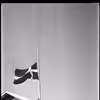 Skive Kulkompagni på havnen, der flages på halv stang på pakhuset. Ca. 1952.
