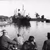 Fragtskibet Pelikan, fra Rensburg, leverer kul til Skive Kulkompagni, på Skive Havn, ca. 1955.