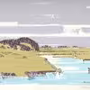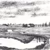 "Udsigt mod Skive", tegning i farve af Karup Å, af Arkitekt Erling Vinds 1980.