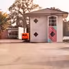Skøjtevej i Kastrup med glasværket og kalkværket i baggrunden - helt til højre ses Broforeningens skure