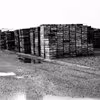1964 Fiskekasser bag Glyngøre Fiskeindustri. Vejen er den gamle Stadionalle i Glyngøre