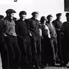 1955 Vognmand Søren Andersen (siddende med ryggen til) er på vej ned til havnen med nogle bundgarnsfiskere