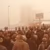 Østbroen over Storebælt under opførelse, set fra stranden ved Granskoven