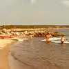 Ceres Stranden med Storebæltsbroen i baggrunden