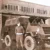 Kaj Gunnar Larsen i uniform og foran Mosegrisen "Olga"