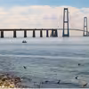 Fyrværkeri over Storebæltsbroen. Den sidste færge modtages i Korsør i juni
