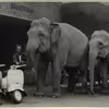 Korsør. To af Cirkus Benneweis' elefanter på besøg hos Korsør Motor Kompagni
