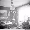 Kvinde sidder ved karnapvindue i dagligstuen.