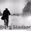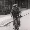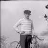 Ukendt mand, iført arbejdstøj på cykel, og pibe i munden.
