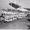 Idrætsugen i Aalborg, AIK piger og drenge opstillet sammen med trænere og deres fane foran Cirkus Valencia.