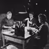 Kvindelige medarbejdere på De Danske Spritfabrikker, banderoler sættes på snapsflaskerne.