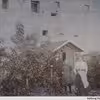 Kolonihavehus i vestbyen, Ryesgades Skole i baggrunden. Ukendt familie står ved havelågen.