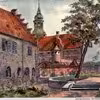 Aalborg Kloster, vestfløjens gavl med klosterkirkens apsis set henover Latinergyden.