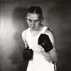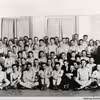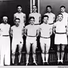 Lindholm Bokseklub, gruppebillede af boksere. Skræddemester Mogensen i jakkesæt, Godfred Høy, træner og massør, Eigil Mortensen sidder nr. 2 f.v.